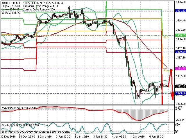 Předpokládaný pohyb pro dnešní den SHORT. Případné vstupy do obchodu z hladiny 1 392 s předpokládaným cílem 1 372.5, případně až 1 365. Proražení hladiny 1 392 může vést k pohybu s pravděpodobným cílem 1 402.5 až 1 409.
