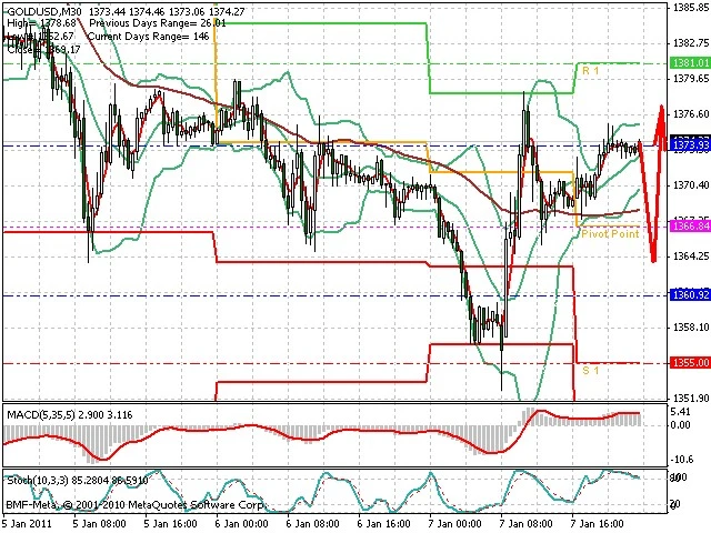 Předpokládaný pohyb pro dnešní den LONG. Případné vstupy do obchodu z hladiny 1 364 s předpokládaným cílem 1 380, případně až 1 385. Proražení hladiny 1 364 může vést k pohybu s pravděpodobným cílem 1 352.5 až 1 340.