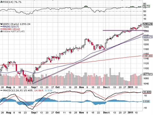 Index neustále roste a 20denního klouzavého průměru se naposledy dotkl 1. 12. 2010. Třicet jedna obchodní dní je dlouhá doba. Od páteční zavírací ceny je 20denní klouzavý průměr přibližně o 27 S&P 500 bodů níže.
