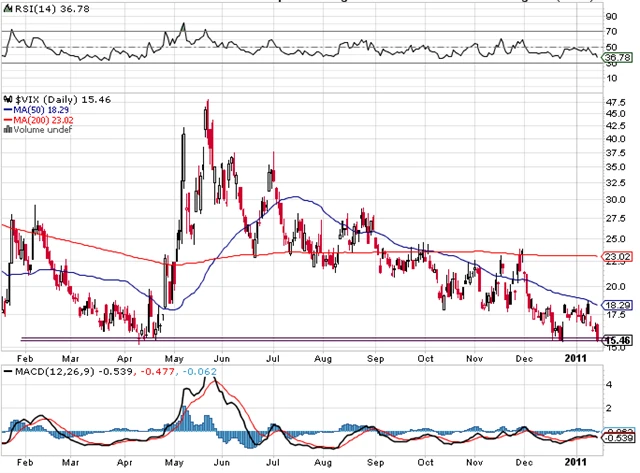 Index volatility VIX pokračoval v poklesu a v pátek se dostal na nízké ceny z prosince a dubna minulého roku a potvrzuje býčí signál pro akcie.