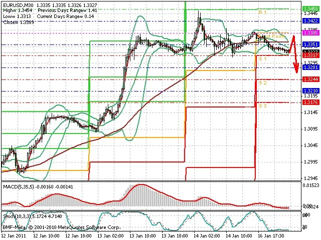 Předpokládaný pohyb pro dnešní den SHORT. Případné vstupy do obchodu z hladiny 1.338 s předpokládaným cílem 1.327, případně až 1.323. Proražení hladiny 1.339 může vést k pohybu s pravděpodobným cílem 1.345 až 1.3495.