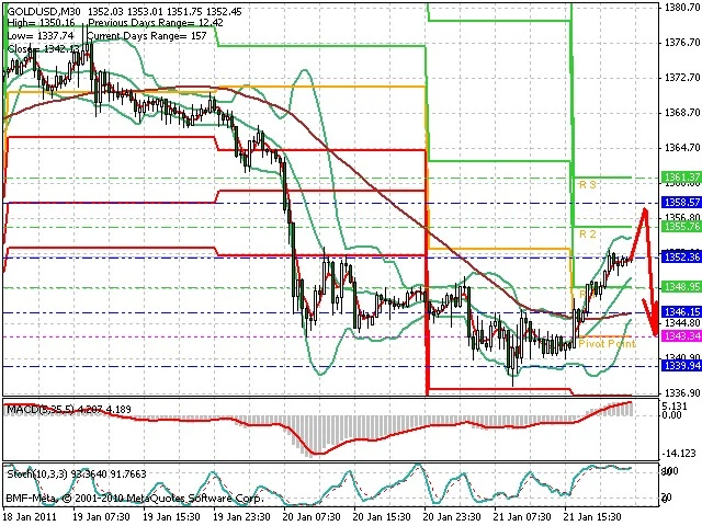 Předpokládaný pohyb pro dnešní den SHORT. Případné vstupy do obchodu z hladiny 1 358 s předpokládaným cílem 1 340, případně až 1 330. Proražení hladiny 1 358 může vést k pohybu s pravděpodobným cílem 1 368 až 1 378.