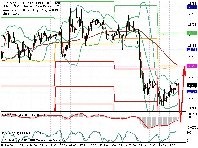 Předpokládaný pohyb pro dnešní den LONG. Případné vstupy do obchodu z hladiny 1.3545 s předpokládaným cílem 1.3675, případně až 1.376. Proražení hladiny 1.3535 může vést k pohybu s pravděpodobným cílem 1.3465 až 1.34.