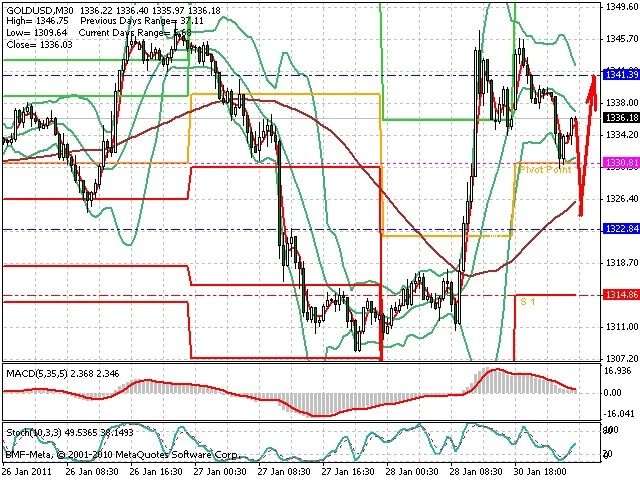 Předpokládaný pohyb pro dnešní den LONG. Případné vstupy do obchodu z hladiny 1 324 s předpokládaným cílem 1 347, případně až 1 354. Proražení hladiny 1 324 může vést k pohybu s pravděpodobným cílem 1 318 až 1 307.