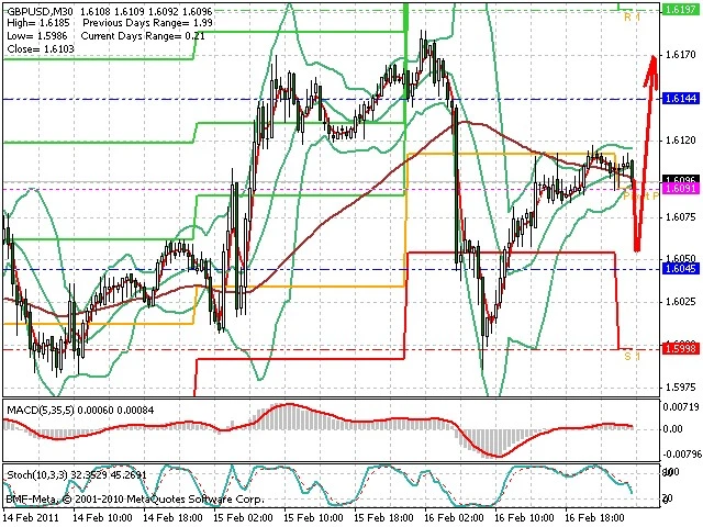 Předpokládaný pohyb pro dnešní den LONG. Případné vstupy do obchodu z hladiny 1.6055 s předpokládaným cílem 1.615, případně až 1.6185. Proražení hladiny 1.6045 může vést k pohybu s pravděpodobným cílem 1.602 až 1.5985.