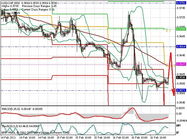 Předpokládaný pohyb pro dnešní den SHORT. Případné vstupy do obchodu z hladiny 0.965 s předpokládaným cílem 0.955, případně až 0.9525. Proražení hladiny 0.965 může vést k pohybu s pravděpodobným cílem 0.968 až 0.9745.