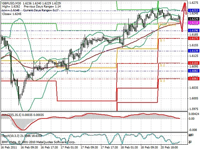 Předpokládaný pohyb pro dnešní den LONG. Případné vstupy do obchodu z hladiny 1.6195 s předpokládaným cílem 1.628, případně až 1.632. Proražení hladiny 1.6185 může vést k pohybu s pravděpodobným cílem 1.6165 až 1.612.
