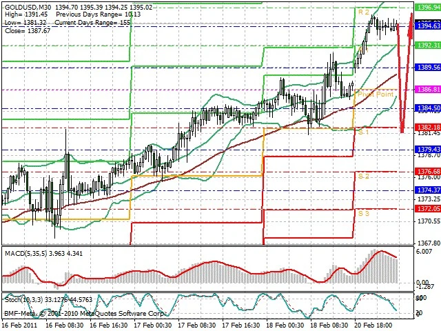 Předpokládaný pohyb pro dnešní den LONG. Případné vstupy do obchodu z hladiny 1 382 s předpokládaným cílem 1 400, případně až 1 406. Proražení hladiny 1 382 může vést k pohybu s pravděpodobným cílem 1 374 až 1 367.5.