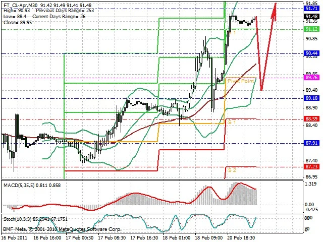 Předpokládaný pohyb pro dnešní den LONG. Případné vstupy do obchodu z hladiny 89.4 s předpokládaným cílem 92.4, případně až 94.5. Proražení hladiny 89.4 může vést k pohybu s pravděpodobným cílem 88.5 až 87.3.