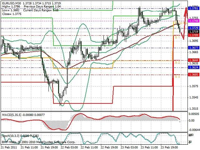 Předpokládaný pohyb pro dnešní den LONG. Případné vstupy do obchodu z hladiny 1.37 s předpokládaným cílem 1.3785, případně až 1.382. Proražení hladiny 1.369 může vést k pohybu s pravděpodobným cílem 1.3645 až 1.36.