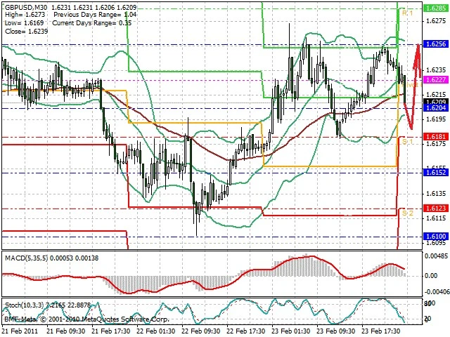 Předpokládaný pohyb pro dnešní den LONG. Případné vstupy do obchodu z hladiny 1.619 s předpokládaným cílem 1.6265, případně až 1.63. Proražení hladiny 1.618 může vést k pohybu s pravděpodobným cílem 1.616 až 1.612.