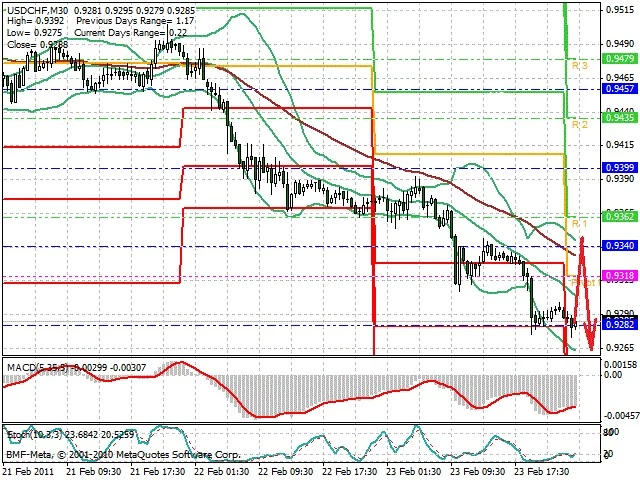 Předpokládaný pohyb pro dnešní den SHORT. Případné vstupy do obchodu z hladiny 0.9355 s předpokládaným cílem 0.925, případně až 0.9215. Proražení hladiny 0.9355 může vést k pohybu s pravděpodobným cílem 0.94 až 0.9455.