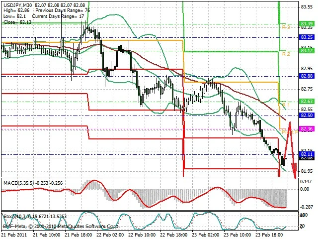 Předpokládaný pohyb pro dnešní den SHORT. Případné vstupy do obchodu z hladiny 82.45 s předpokládaným cílem 82, případně až 81.75. Proražení hladiny 82.5 může vést k pohybu s pravděpodobným cílem 82.8 až 83.05.