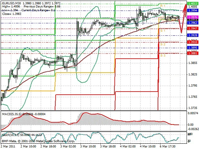 Předpokládaný pohyb pro dnešní den LONG. Případné vstupy do obchodu z hladiny 1.3935 s předpokládaným cílem 1.401, případně až 1.4055. Proražení hladiny 1.3925 může vést k pohybu s pravděpodobným cílem 1.3885 až 1.3835.
