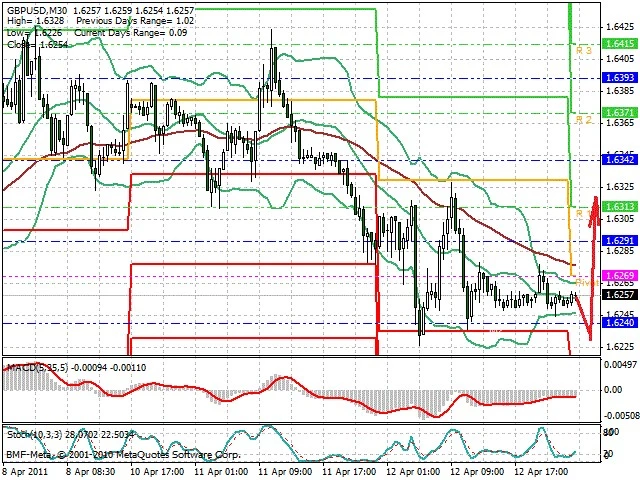 Předpokládaný pohyb pro dnešní den LONG. Případné vstupy do obchodu z hladiny 1.6235 s předpokládaným cílem 1.632, případně až 1.6365. Proražení hladiny 1.6225 může vést k pohybu s pravděpodobným cílem 1.6175 až 1.6135.
