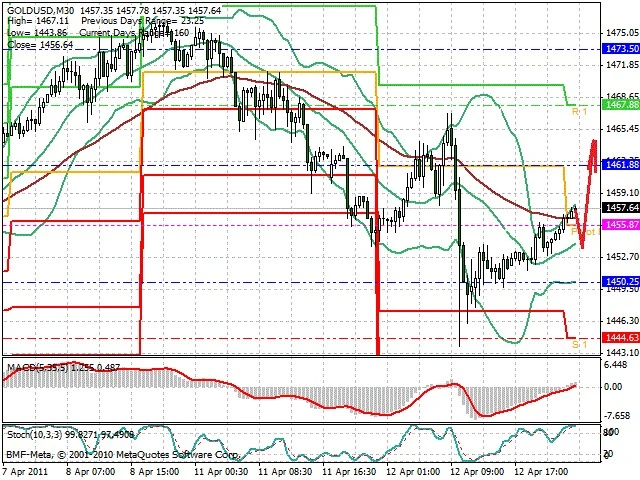 Předpokládaný pohyb pro dnešní den LONG. Případné vstupy do obchodu z hladiny 1 453 s předpokládaným cílem 1 463, případně až 1 467. Proražení hladiny 1 453 může vést k pohybu s pravděpodobným cílem 1 445 až 1 439.