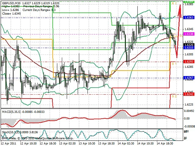 Předpokládaný pohyb pro dnešní den LONG. Případné vstupy do obchodu z hladiny 1.63 s předpokládaným cílem 1.6385, případně až 1.643. Proražení hladiny 1.6288 může vést k pohybu s pravděpodobným cílem 1.625 až 1.6225.