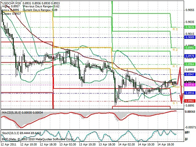 Předpokládaný pohyb pro dnešní den SHORT. Případné vstupy do obchodu z hladiny 0.896 s předpokládaným cílem 0.89, případně až 0.8865. Proražení hladiny 0.896 může vést k pohybu s pravděpodobným cílem 0.902 až 0.906.