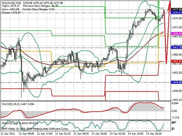 Předpokládaný pohyb pro dnešní den LONG. Případné vstupy do obchodu z hladiny 1 457.5 s předpokládaným cílem 1 480, případně až 1 497. Proražení hladiny 1 456 může vést k pohybu s pravděpodobným cílem 1 445 až 1 440.
