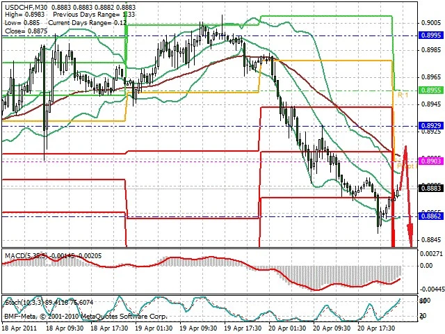 Předpokládaný pohyb pro dnešní den SHORT. Případné vstupy do obchodu z hladiny 0.8915 s předpokládaným cílem 0.883, případně až 0.88. Proražení hladiny 0.8915 může vést k pohybu s pravděpodobným cílem 0.895 až 0.901.