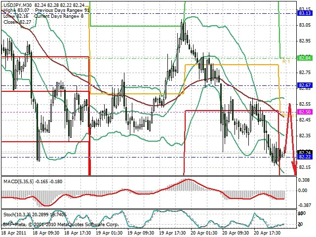 Předpokládaný pohyb pro dnešní den SHORT. Případné vstupy do obchodu z hladiny 82.55 s předpokládaným cílem 82, případně až 81.75. Proražení hladiny 82.6 může vést k pohybu s pravděpodobným cílem 82.8 až 83.15.