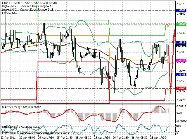 Předpokládaný pohyb pro dnešní den LONG. Případné vstupy do obchodu z hladiny 1.6435 s předpokládaným cílem 1.6535, případně až 1.657. Proražení hladiny 1.6425 může vést k pohybu s pravděpodobným cílem 1.6385 až 1.633.