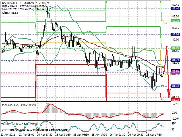 Předpokládaný pohyb pro dnešní den SHORT. Případné vstupy do obchodu z hladiny 81.9 s předpokládaným cílem 81.25, případně až 81.1. Proražení hladiny 82 může vést k pohybu s pravděpodobným cílem 82.45 až 82.75.