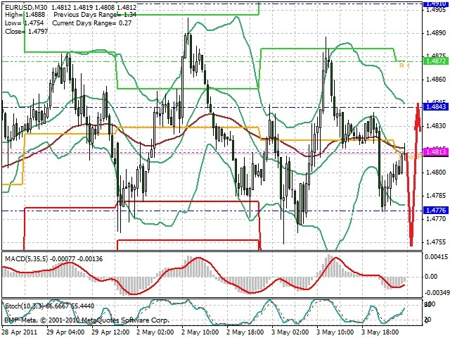 Předpokládaný pohyb pro dnešní den LONG. Případné vstupy do obchodu z hladiny 1.475 s předpokládaným cílem 1.4845, případně až 1.489. Proražení hladiny 1.475 může vést k pohybu s pravděpodobným cílem 1.471 až 1.465.