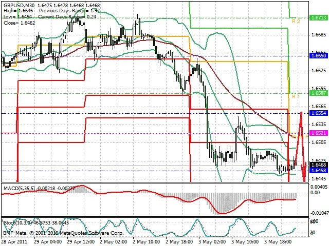 Předpokládaný pohyb pro dnešní den SHORT. Případné vstupy do obchodu z hladiny 1.6555 s předpokládaným cílem 1.643, případně až 1.6385. Proražení hladiny 1.6555 může vést k pohybu s pravděpodobným cílem 1.66 až 1.665.