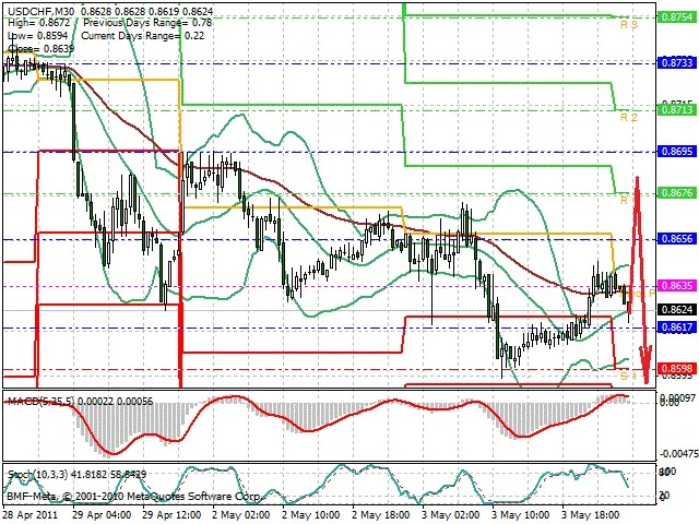 Předpokládaný pohyb pro dnešní den SHORT. Případné vstupy do obchodu z hladiny 0.868 s předpokládaným cílem 0.8595, případně až 0.857. Proražení hladiny 0.868 může vést k pohybu s pravděpodobným cílem 0.8715 až 0.875.