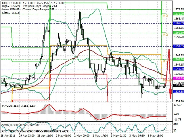 Předpokládaný pohyb pro dnešní den SHORT. Případné vstupy do obchodu z hladiny 1 552 s předpokládaným cílem 1 525, případně až 1 518. Proražení hladiny 1 552 může vést k pohybu s pravděpodobným cílem 1 558 až 1 567.