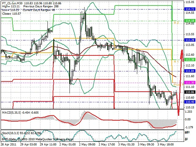 Předpokládaný pohyb pro dnešní den LONG. Případné vstupy do obchodu z hladiny 109.4 s předpokládaným cílem 112.75, případně až 114. Proražení hladiny 109.4 může vést k pohybu s pravděpodobným cílem 108 až 106.1.