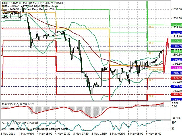 Předpokládaný pohyb pro dnešní den LONG. Případné vstupy do obchodu z hladiny 1 484 s předpokládaným cílem 1 515, případně až 1 519.5. Proražení hladiny 1 484 může vést k pohybu s pravděpodobným cílem 1 476 až 1 463.