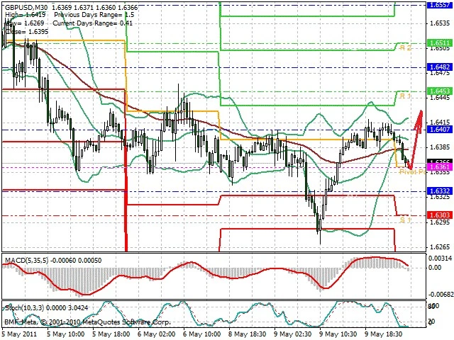 Předpokládaný pohyb pro dnešní den LONG. Případné vstupy do obchodu z hladiny 1.636 s předpokládaným cílem 1.6435, případně až 1.6465. Proražení hladiny 1.635 může vést k pohybu s pravděpodobným cílem 1.6305 až 1.627.