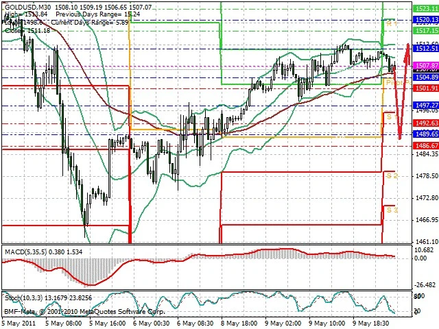 Předpokládaný pohyb pro dnešní den LONG. Případné vstupy do obchodu z hladiny 1 489 s předpokládaným cílem 1 514, případně až 1 519.5. Proražení hladiny 1 489 může vést k pohybu s pravděpodobným cílem 1 476 až 1 463.