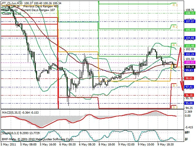 Předpokládaný pohyb pro dnešní den SHORT. Případné vstupy do obchodu z hladiny 103.35 s předpokládaným cílem 96.95, případně až 94.7. Proražení hladiny 103.35 může vést k pohybu s pravděpodobným cílem 105 až 106.1.