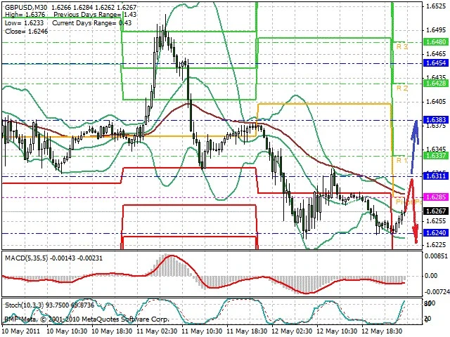 Předpokládaný pohyb pro dnešní den SHORT. Případné vstupy do obchodu z hladiny 1.631 s předpokládaným cílem 1.623, případně až 1.617. Proražení hladiny 1.632 může vést k pohybu s pravděpodobným cílem 1.638 až 1.644.