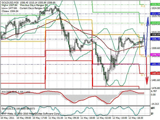 Předpokládaný pohyb pro dnešní den LONG. Případné vstupy do obchodu z hladiny 1 495 s předpokládaným cílem 1 519, případně až 1 527. Proražení hladiny 1 495 může vést k pohybu s pravděpodobným cílem 1 480 až 1 470.