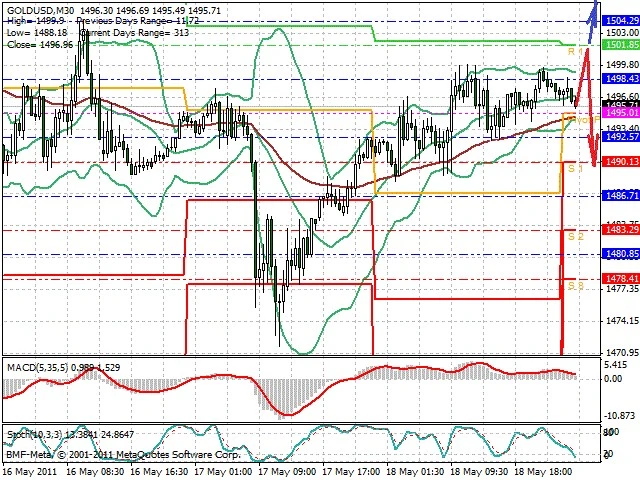 Předpokládaný pohyb pro dnešní den SHORT. Případné vstupy do obchodu z hladiny 1 501 s předpokládaným cílem 1 490, případně až 1 472. Proražení hladiny 1 501 může vést k pohybu s pravděpodobným cílem 1 516 až 1 527.