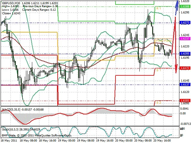 Předpokládaný pohyb pro dnešní den SHORT. Případné vstupy do obchodu z hladiny 1.629 s předpokládaným cílem 1.6165, případně až 1.613. Proražení hladiny 1.63 vést k pohybu s pravděpodobným cílem 1.6385 až 1.642.