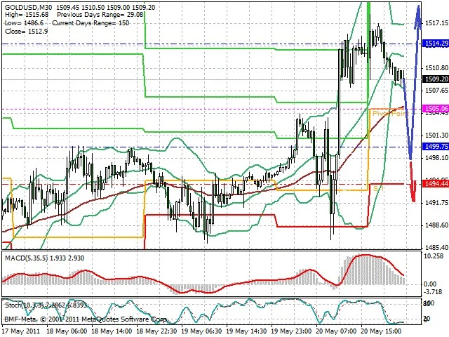 Předpokládaný pohyb pro dnešní den LONG. Případné vstupy do obchodu z hladiny 1 498 s předpokládaným cílem 1 519, případně až 1 527. Proražení hladiny 1 498 může vést k pohybu s pravděpodobným cílem 1 492 až 1 487.