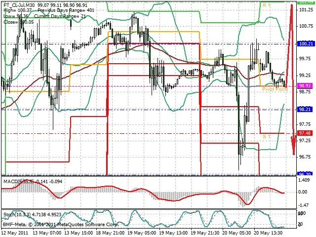 Předpokládaný pohyb pro dnešní den SHORT. Případné vstupy do obchodu z hladiny 101.4 s předpokládaným cílem 96.7, případně až 95.8. Proražení hladiny 101.4 může vést k pohybu s pravděpodobným cílem 103 až 105.
