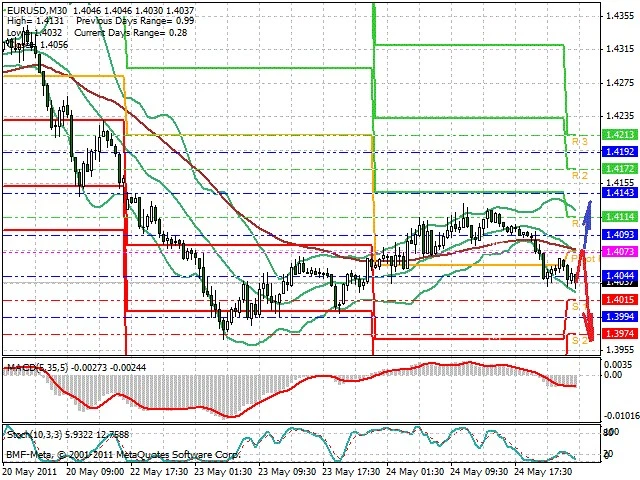 Předpokládaný pohyb pro dnešní den SHORT. Případné vstupy do obchodu z hladiny 1.4075 s předpokládaným cílem 1.3965, případně až 1.3865. Proražení hladiny 1.4085 může vést k pohybu s pravděpodobným cílem 1.4135 až 1.42.
