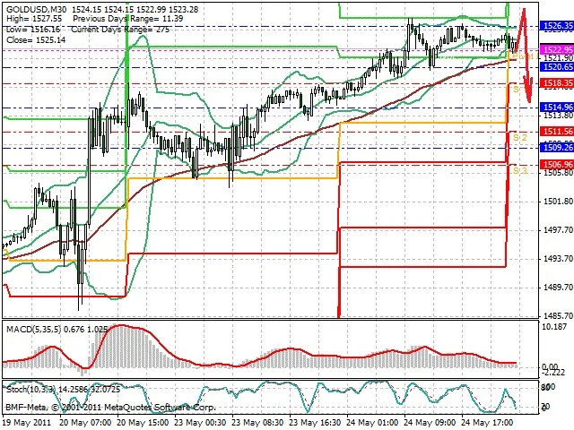 Předpokládaný pohyb pro dnešní den SHORT. Případné vstupy do obchodu z hladiny 1 530 s předpokládaným cílem 1 516, případně až 1 504. Proražení hladiny 1 530 může vést k pohybu s pravděpodobným cílem 1 535 až 1 540.