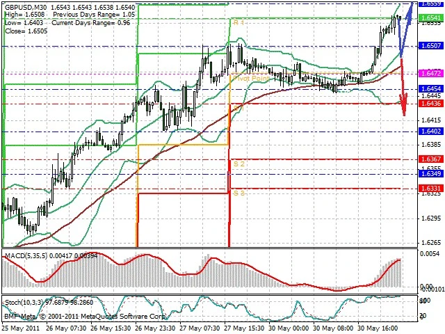 Předpokládaný pohyb pro dnešní den LONG. Případné vstupy do obchodu z hladiny 1.649 s předpokládaným cílem 1.6575, případně až 1.6615. Proražení hladiny 1.648 vést k pohybu s pravděpodobným cílem 1.642 až 1.638.