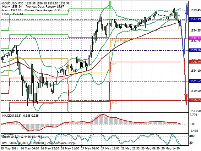 Předpokládaný pohyb pro dnešní den LONG. Případné vstupy do obchodu z hladiny 1 527 s předpokládaným cílem 1 540, případně až 1 550. Proražení hladiny 1 527 může vést k pohybu s pravděpodobným cílem 1 514 až 1 509.