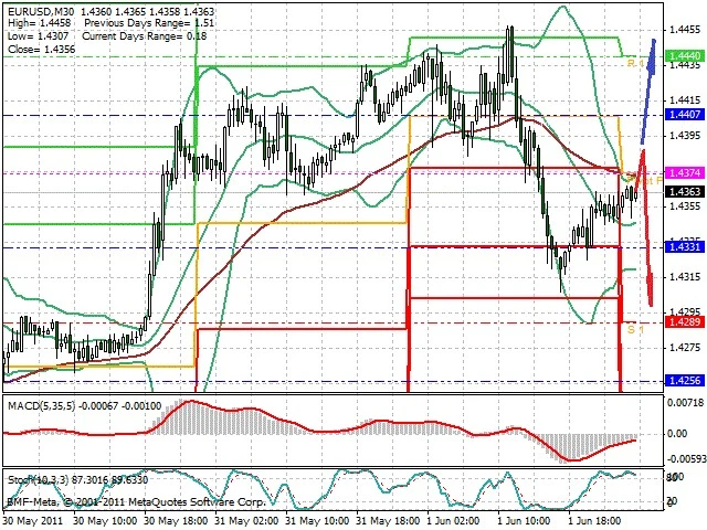 Předpokládaný pohyb pro dnešní den SHORT. Případné vstupy do obchodu z hladiny 1.438 s předpokládaným cílem 1.43, případně až 1.4265. Proražení hladiny 1.439 může vést k pohybu s pravděpodobným cílem 1.4425 až 1.446.