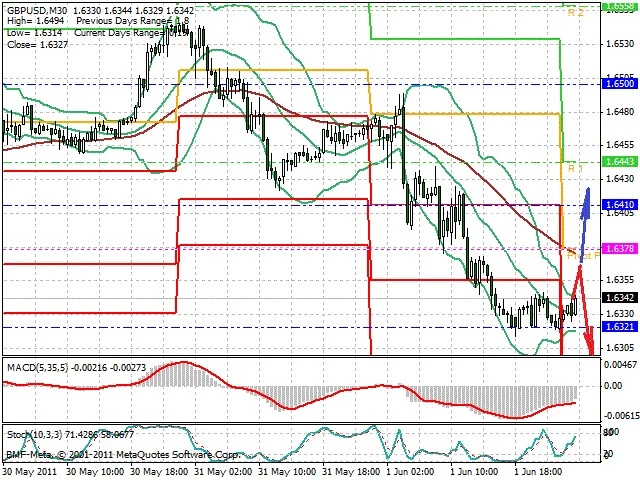Předpokládaný pohyb pro dnešní den SHORT. Případné vstupy do obchodu z hladiny 1.6365 s předpokládaným cílem 1.63, případně až 1.6265. Proražení hladiny 1.6375 vést k pohybu s pravděpodobným cílem 1.6425 až 1.6475.