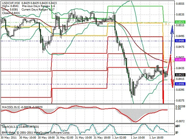 Předpokládaný pohyb pro dnešní den SHORT. Případné vstupy do obchodu z hladiny 0.846 s předpokládaným cílem 0.84, případně až 0.838. Proražení hladiny 0.846 může vést k pohybu s pravděpodobným cílem 0.8515 až 0.855.