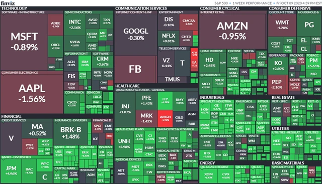 Komponenty indexu S&P 500 v týdnu do 9. října 2020